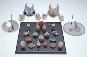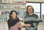 利子さんは、平成6年九谷焼技術研修所でやきものを学び、数年前から自分なりのもの作りを始め、日常生活に何か心温まる、ほっとするエッセンスがほしいと、おひなさま、かぶと、お月見といった可愛いオーナメントの提案です。そんな利子さんに、近年ではしっかりファンもついてしまって、「そんなもんクラフトじゃない」と罵りながらも、その才能を認めざるを得ないと鐵男さん。かと言って鐵男さんを師として、その文句に耳を傾ける利子さんの夫婦愛が、あたたかく、まるでこのお雛様のようです。 |